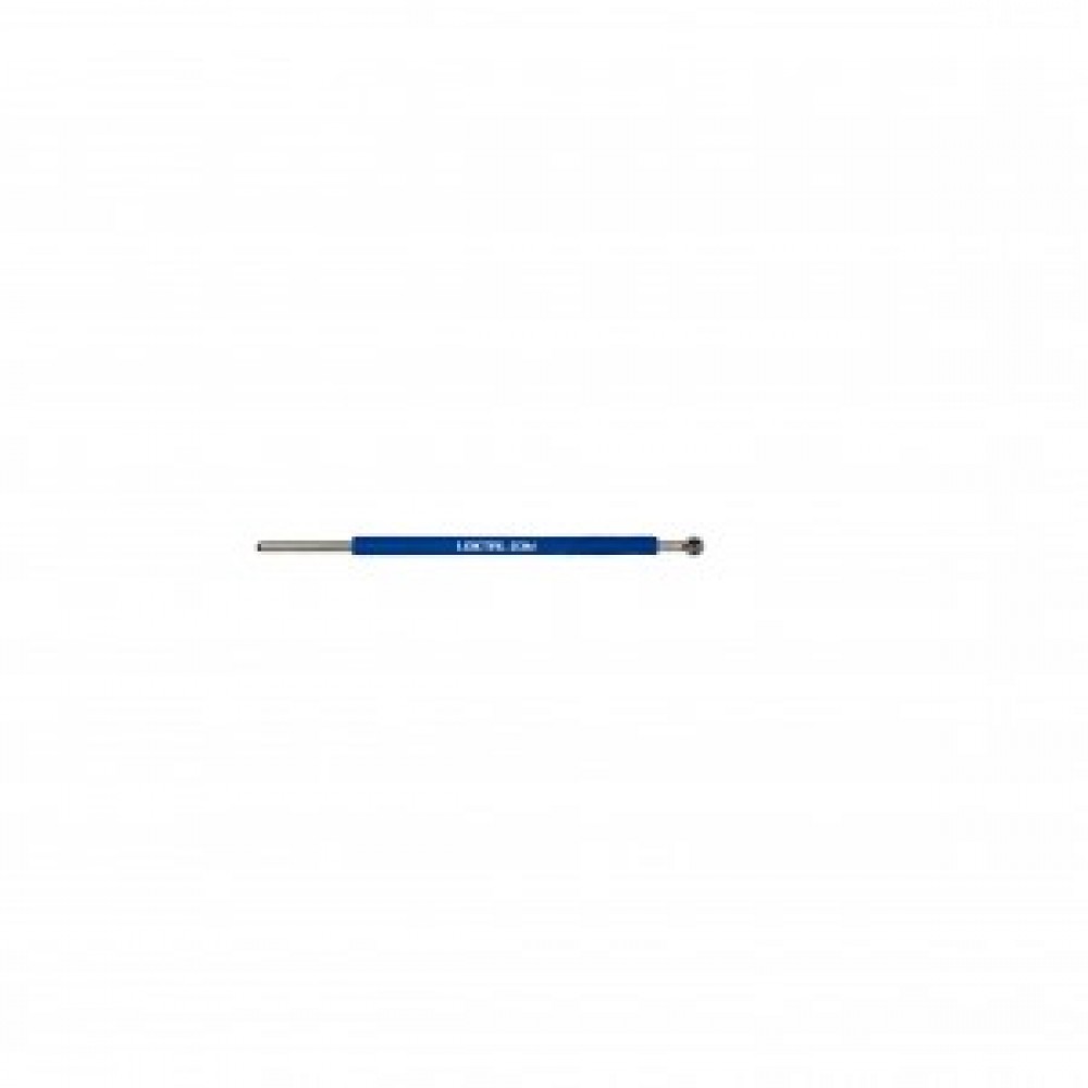 Haste fabricada em tubo inox 304, Ø 2,4 mm e arame inox 304, Ø 1,8 mm revestida em termoencolhível azul, medindo 50 mm. Ponta esférica inox 304, Ø 3 mm.