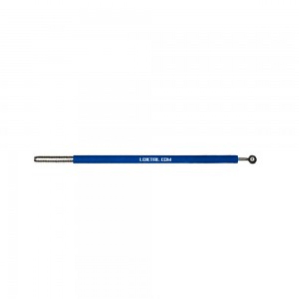 Haste fabricada em tubo inox 304, Ø 2,4 mm e arame inox 304, Ø 1,8 mm revestida em termoencolhível azul, medindo 75 mm. Ponta esférica inox 304 Ø 3 mm