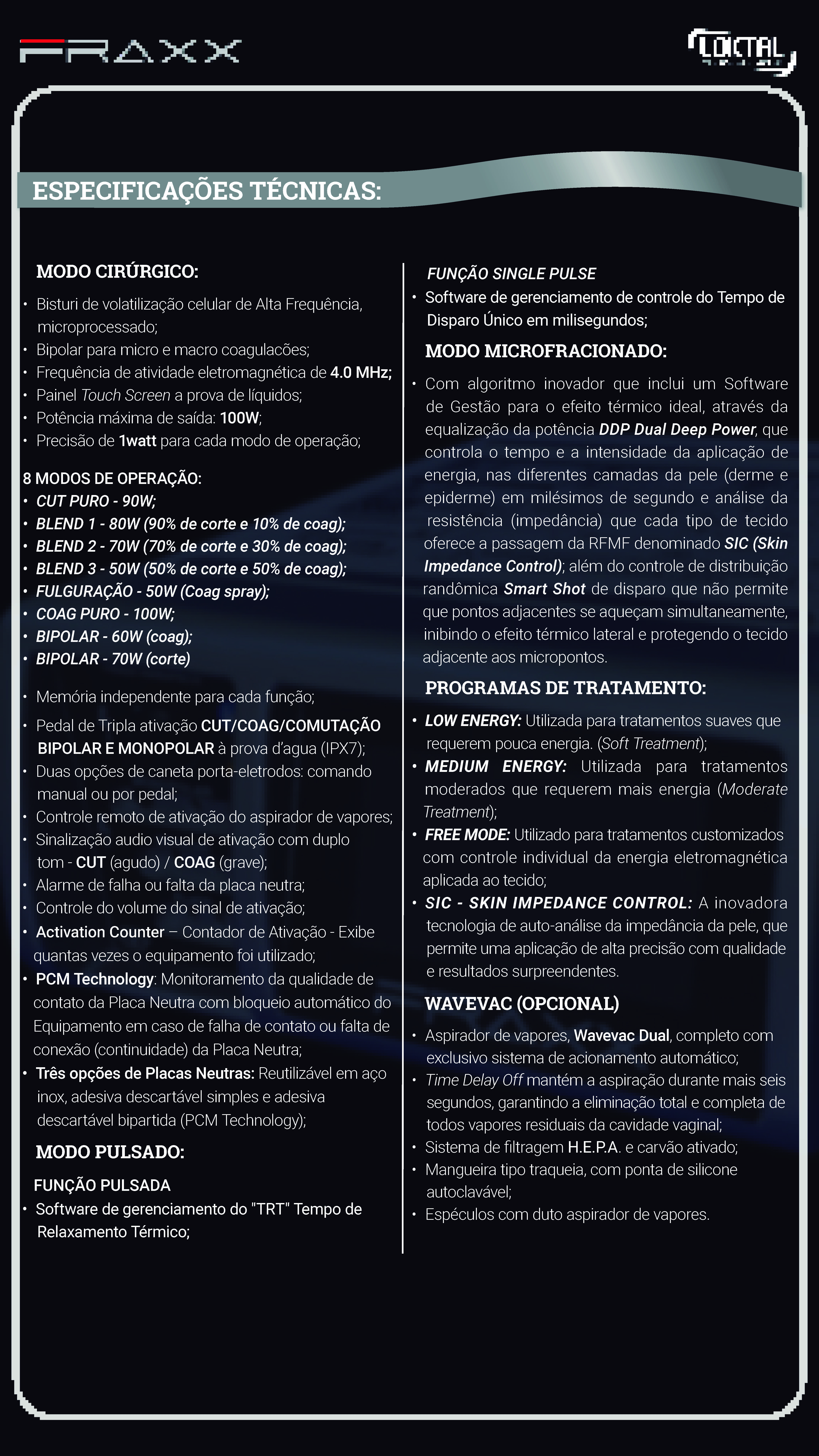 O New Fraxx All In One é a solução definitiva para médicos, clínicas e hospitais que buscam alta tecnologia, precisão cirúrgica e versatilidade em um único equipamento.